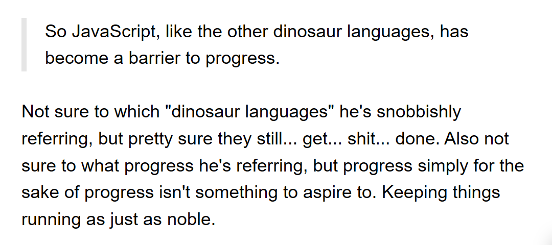 就像其他化石语言一样,JavaScript 就成为了进步的障碍