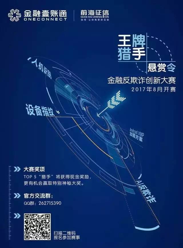 所谓“魔高一尺,道高一丈”。大数据技术与人工智能的兴起,为反欺诈及时注入科技新势能。为了直击“黑产”痛点,寻找最优秀的“猎手”,金融壹账通前海征信此次特地发出“王牌猎手悬赏令”!即日起,“王牌猎手”金融反欺诈创新大赛正式启动。想要探索更具创意、更为高效的反欺诈解决方案,展现自己优秀的“猎手”基因吗?快来试一试吧!