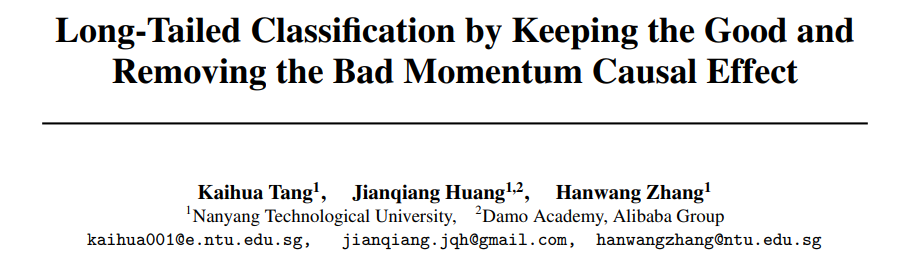 论文题目: 《Long-Tailed Classification by Keeping the Good and Removing the Bad Momentum Causal Effect》。