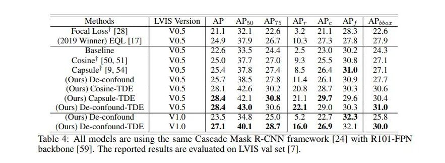 同时我们直接运用到LVIS长尾实例分割数据集下后,我们也超过了去年LVIS 2019比赛的冠军EQL(当然是在相同setting下,比赛正式结果还包含很多比赛专用的trick,比如额外数据,模型融合等)。关于LVIS的实验,比较逗的是,我们paper投出去后,LVIS官方更新了数据集,因此我们最终版也在最新的LVIS V1.0下跑了个结果,方便大家比较。