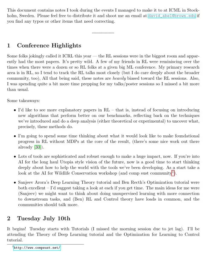 ICML2018结束的第二天,一位来自美国布朗大学的学霸就公开分享了他在这次大会上整理的长达50多页的珍贵笔记。这份笔记不仅内容详实,包含了不少来自现场拍摄的PPT图片,还根据参会日期和会场做了详细的目录,不可多得。