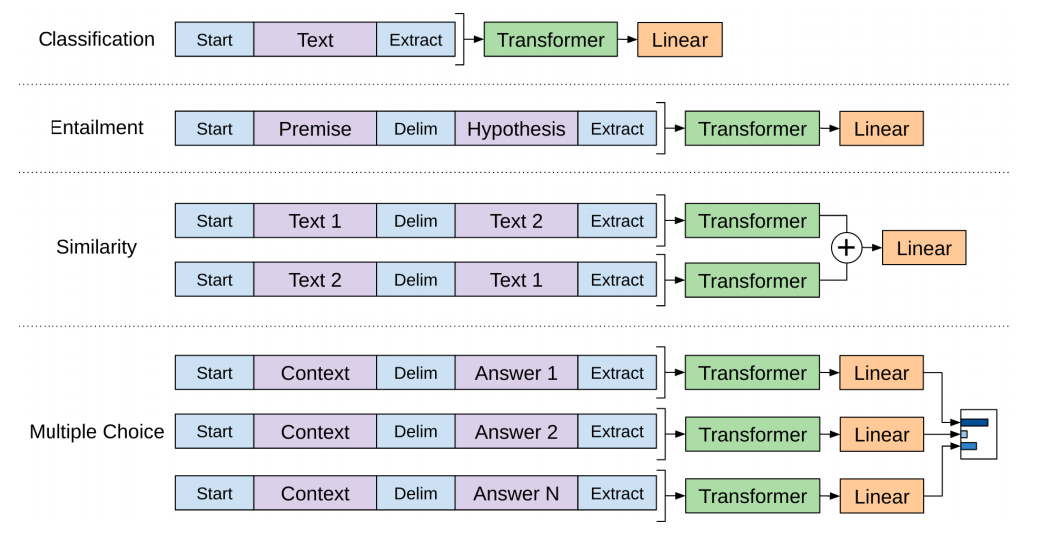 we make use of task-aware input transformations during fine-tuning to achieve effective transfer while requiring minimal changes to the model architecture.