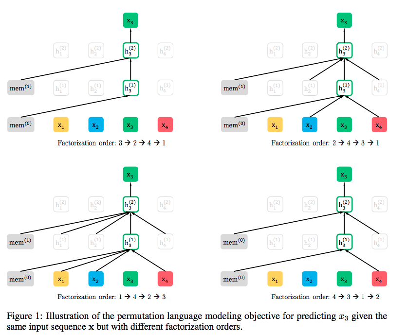可是他究其一生也没能完成这个任务,他的儿子 XLNet 弥补了它的遗憾,解决了双向语境问题,大概的方案就是
