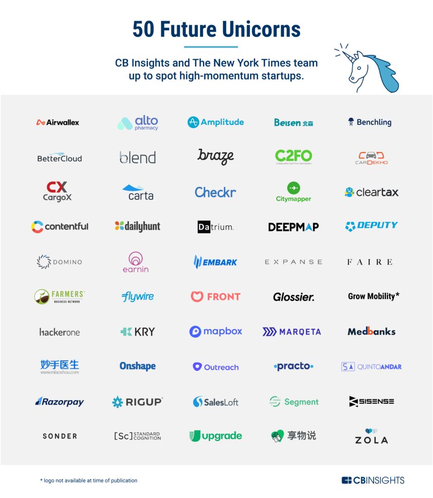 CB Insights使用各种数据,包括财务状况以及公司所服务的市场的实力和规模,来识别可能正在实现10亿美元估值的50家初创企业。