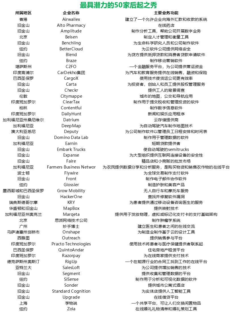 值得注意的是,17家快速崛起的初创企业分散在广阔的国际市场。