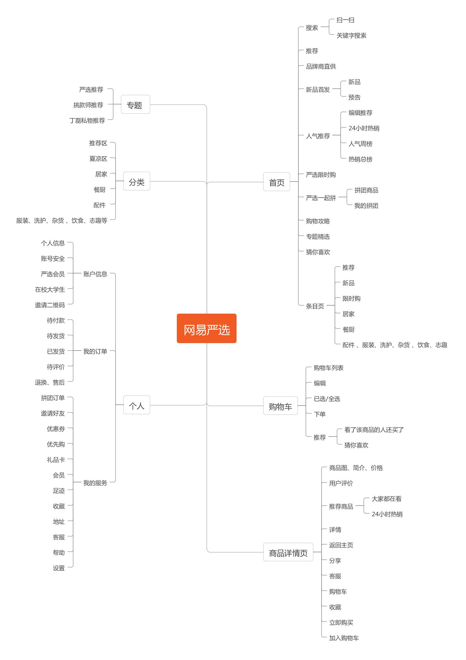 网易严选:首页、专题、分类、购物车、个人