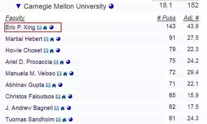 其中,邢波教授在卡内基梅隆教授计算机科学顶会论文排名高居首位。