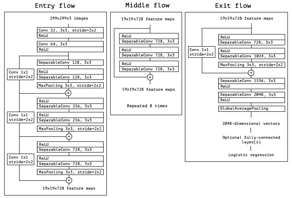文中 Xception 实验部分是非常详细的,实现细节可参见论文。