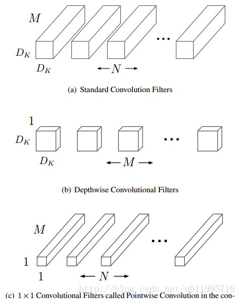 对 Standard convolution 而言,是采用 N 个大小为 DK*DK 的卷积核进行操作(注意卷积核大小是 DK*DK, DK*DK*M 是具体运算时一个卷积核的大小!)