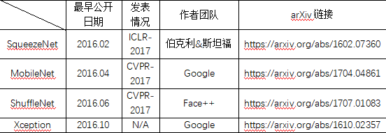 其中 ShuffleNet 论文中引用了 SqueezeNet;Xception 论文中引用了 MobileNet