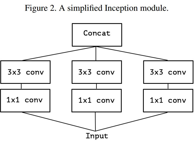下图 1 是 Inception module,图 2 是作者简化了的 inception module(就是只保留 1*1 的那条「路」,如果带着 avg pool,后面怎么进一步假设嘛~)