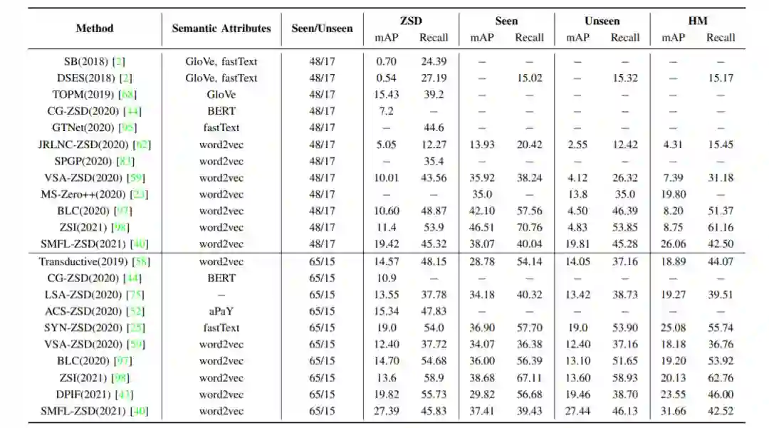 本文对现有的少样本和零样本目标检测算法进行了全面的回顾和分析。本文总结了现有的少样本和零样本目标检测算法的性能。本文讨论了少样本和零样本目标检测的主要挑战和未来的发展方向。本文综述的其余部分组织如下。第二节描述了对少样本和零样本目标检测算法进行更细粒度的分类和分析。第八节描述了常用的少样本和零样本目标检测数据集和评价标准。第九节总结了现有的少样本和零样本目标检测算法的性能。最后,第十一节总结了本次综述的内容,然后讨论了当前方法面临的主要挑战和未来的发展方向的少样本和零样本目标检测。