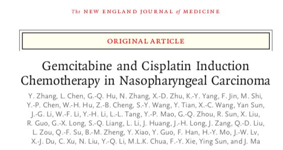 Jun Ma, Yuan Zhang, Ying Sun, et al.Gemcitabine and Cisplatin Induction Chemotherapy in Nasopharyngeal Carcionma[J/OL]. The New England Journal of Medicine.2019.5.31.