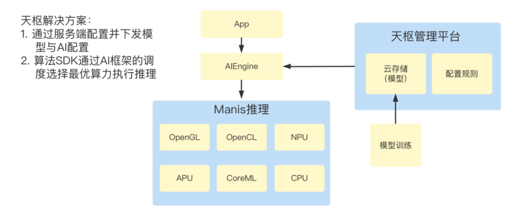 在实际应用中,Manis 包含 AI 服务、天枢系统、运维监控等在内的多项功能,主要通过以下三个体系模块来实现对算法的优化加速: