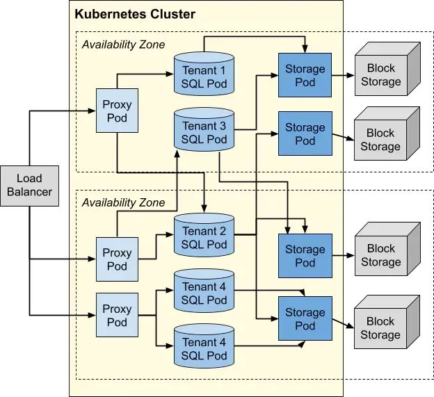 它们在租户的可用 SQL pod 上平衡负载。向 CPU 负载最小的 pod 发送新的连接。