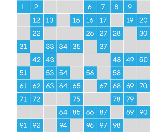 如下图所示,蓝色方格内的数字可以写成两个有理数的立方和;其他则不能。