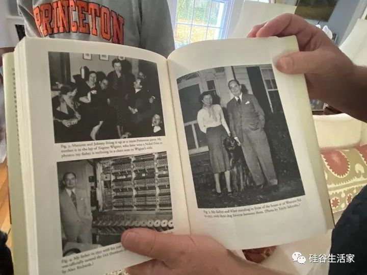 不知怎地,Archie说到冯诺伊曼杰出的独生女Marina,从书房拿出她写的回忆录(《火星人的女儿》2013年出版)。翻开书,看书里的照片。啊,就是在我们站着的这个客厅,冯诺伊曼,80多年前,和家人享受天伦之乐,和朋友一起谈笑风生。