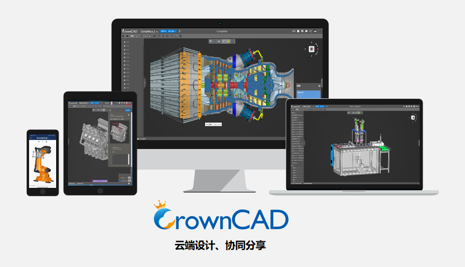 云架构具有协同设计、数据管理等优势,由此,CrownCAD 也具备有很多传统 CAD 软件所没有的功能,比如无需安装,打开浏览器就能多端运行;支持多用户在线、异地、多终端协同设计;支持公有云、私有云、混合云部署;支持版本控制等。