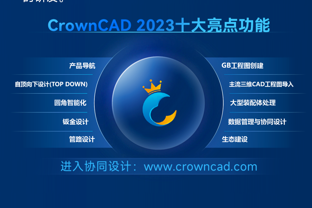 CrownCAD 2023 版本的十大亮点(见下图)正是这一含义的具体体现。