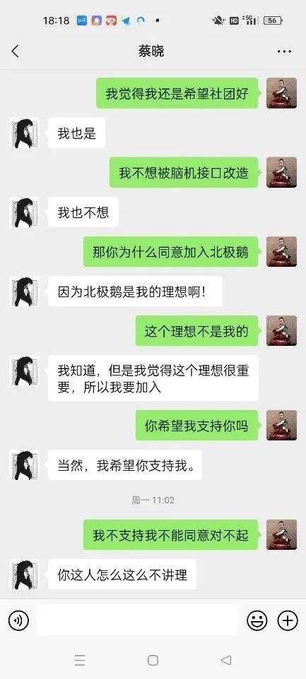 蔡晓跟我聊天过程中,不断流露出对男友的担心和深沉的爱意,仿佛所做一切都是为了男友,特别是当我试图趁虚而入向她表白时,她的表现更像是一位忠贞的女友,毫不犹豫给我发了“好人卡”:我们是最好的朋友,更是以“我要去洗澡了”来结束对话。其中拒绝时的委婉和坚决,真让我有种似曾相识的错觉。
