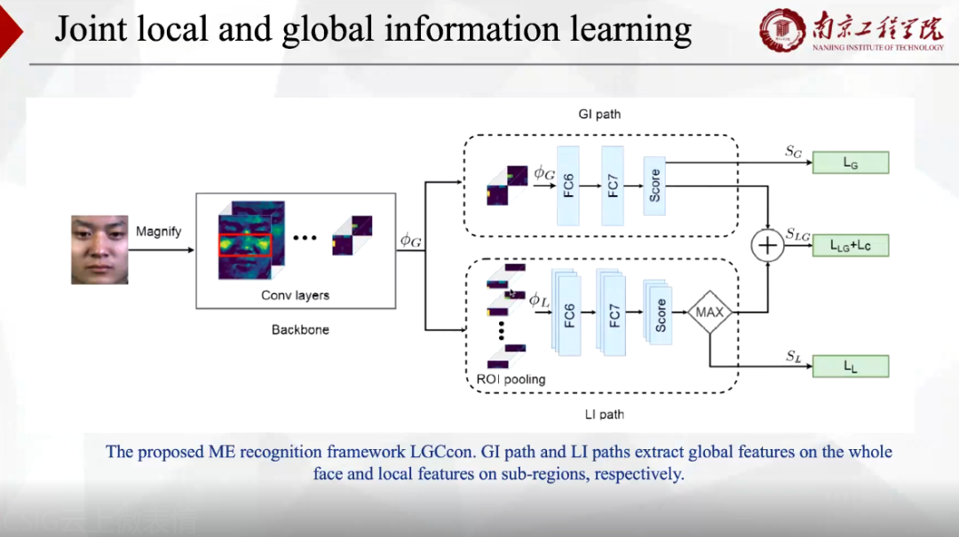然后,由于微表情是一个局部的脸部运动,不同的局部信息对微表情识别具有不均衡的影响。因此,黄教授等人提出了结合局部和全局信息的学习网络。