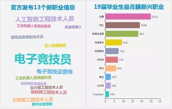 前段时间大学生一站式求职网申平台“梧桐果”面向全国10万名应届大学生发布问卷,整理了《2019毕业生求职意向调查报告》,报告谈及,直播、网红、新媒体运营、网游陪练等新兴职业备受追捧,新一代年轻人把“玩”变成了可以用来谋生发展的工作。