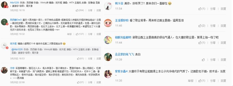 作词老师苏药卿表示自己喜欢南朝乐府《西洲曲》很久了,一直梦想写一首属于江南水乡的歌,这次为《大唐无双》新职业风华派创作主题曲正是完了自己的梦。而令他惊讶的是,作品问世之后收到了不错的反响,原来如今仍有那么多人喜欢《西洲曲》这一国风经典。