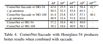 CornerNet-Saccade 设计了一种新的backbone:Hourglass-54(含3个hourglass模块,深度为54)。原CornerNet中使用的是 Hourglass-104(含2个hourglass模块,深度为54)。
