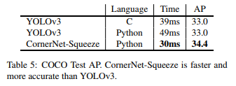 见证奇迹的时候来了!CornerNet-Squeeze 吊打YOLOv3,因为即使是C语言版本的YOLOv3,都已被全方位(mAP+FPS)超过。
