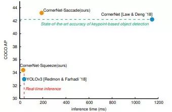 CornetNet 在 ECCV 2018 (oral)上横空出世,引领一波基于关键点的目标检测狂潮(最近anchor-free盛行),但这类算法(很多one-stage)也有缺点。虽然mAP有很大提升,但速度上都远不能达到实时(有些论文就避而不谈FPS了)。这其实可以看成学术阶段的成果,但距离落地应用还有一点距离。