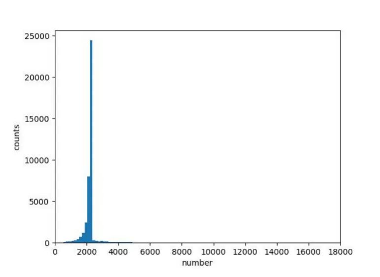 其次是数据增强有两点值得一提,一是常见的镜像翻转,分类任务中翻了就翻了,目标检测中要把目标框的横坐标同样翻转,而人体姿态估计更进一步,对关键点横坐标翻转之后,还要修改对应关键点的顺序,比如左手腕的图片水平镜像翻转后,它就不再是左手腕而变成右手腕了,这是一个小坑,不过阅读一些开源代码应该也能看到相应的处理;第二点就是随机裁剪crop增大目标范围,主要是初步验证的时候发现泛化效果不好,经过简单数据分析,发现训练集的关键点区域面积集中在2000附近: