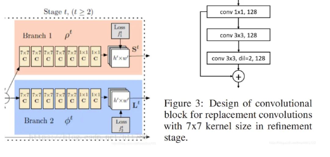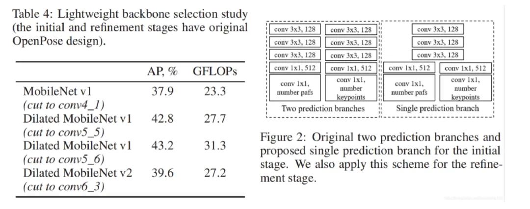 而Lightweight OpenPose作者测试发现原openpose的refinement stage的5个阶段,从第一个refinement stage1之后,正确率没有提升多少,但是运算量就加大了。并且还发现了refinement stage网络的关键点定位(heatmap)和关键点组合(pafs)两部分的两条分支运算,有不少操作是一样的,造成运算冗余。于是主要进行了以下优化: