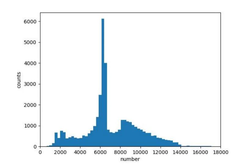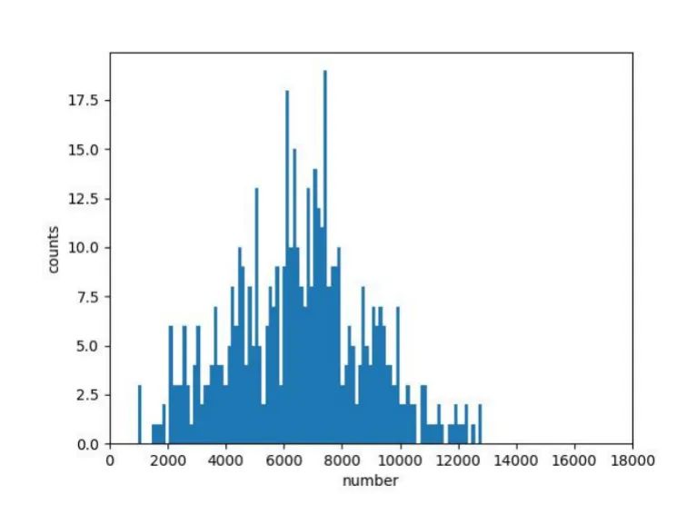 再看看目标场景采集的几百张图片的关键点区域面积分布,范围是2000-12000,且峰值在6000-8000: