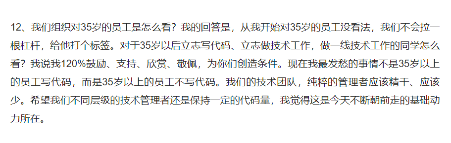 更重要的是,职场生态需要进一步改善,希望企业为大龄技术人营造更加公平良性的就业机会和就业环境,给予大龄程序员更加包容、开放的空间。