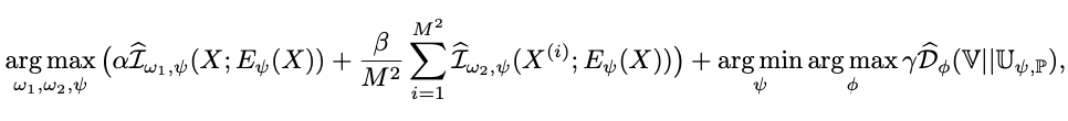 文章优化的目标从最大化 预测 的概率 变成优化最大化 和 之间的互信息 ,通过最大化互信息,可以抽取出输入之间的一些共性的潜变量。