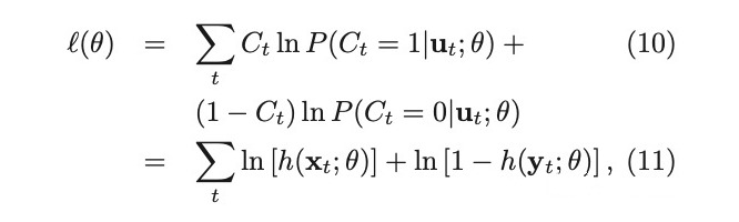 One Sentence Summary:给现有的样本加上噪声,作为负样本,模型对原本真实的样本和新增的负样本进行区分,从而将 softmax 这种低效的计算转化成二分类的 logloss,计算效率更高,下面公式里的 代表真实的样本, 代表加了 noise 后的样本。