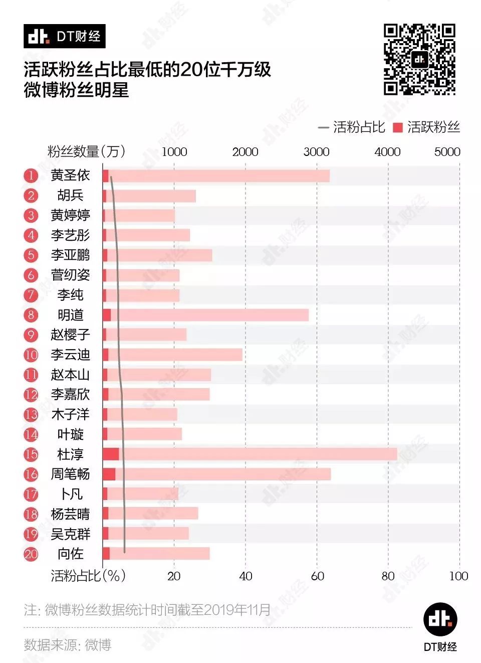这个比例排名的另一端会更刺激一些——谁才是千万粉丝大V中活粉率最低的大明星?