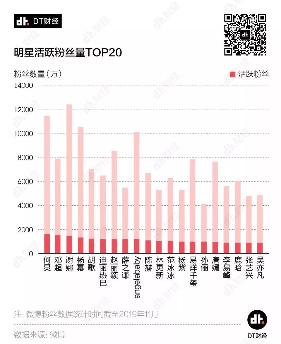 我们单纯地给这些明星的活跃粉丝量排了个序,来一发微博真·人气王评选。