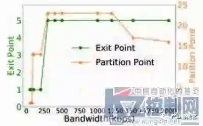 图5记录了在不同带宽下框架的退出点与模型分割点的选择。从结果可以看出,由框架选择出来的退出点随着带宽的上升而增大,这意味着在高带宽下框架会选用具有更高精度的退出点,即选择出更高精度的模型。