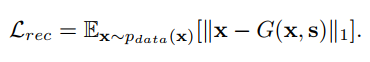 为了保证生成器在给定其原始风格时可以重建源图像,其施加图像重建损失为: