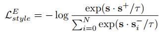 虽然L_MI提供了一种自动生成输入图像的域标签方法,但是当图像的分辨率高于64x64或样本变得复杂多样时它无法放大。因此我们作者向引导网络中添加辅助支路Estyle并施加对比损耗来克服这一点,公式如下: