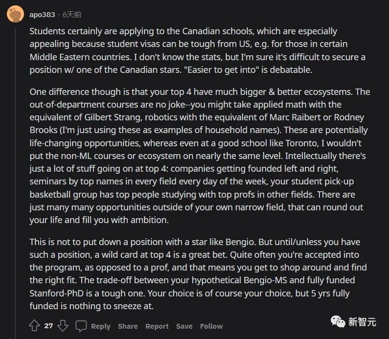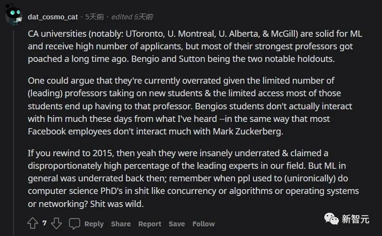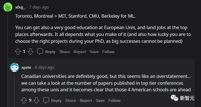 有的网友干脆给出了心目中的ML排名:多伦多、蒙特利尔 > 麻省理工学院、斯坦福大学、CMU、UCB。