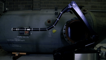 这款蛇形机器手臂(snake-armrobots)臂铰接长度为1米-3.1米,刚性延伸长度为0米-5米,能有效承载10公斤重,弯曲可达225度角,具弹性的「头部」可以依需求装设检测摄影机、感应器、机器手指、钻孔机、高压水柱或强力光源等配件,在人力无法触及的狭窄空间内穿梭,同时进行检查、清洗、钻孔等工作;若需要采集各种液态、粉状或片状的样本,也犹如探囊取物一般。