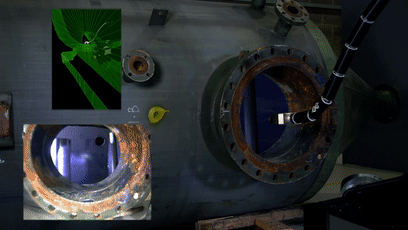 X50蛇形机械臂系统,由三个部件组成,蛇形机械臂,Planar机械臂和运动模块,运动模块将系统移动到工作区域,因为系统与人类大小差不多,所以它可以利用已有的走廊和门,工作人员可以在安全工作室远程操作,Planar机械臂主要有两个功能,第一个是将蛇形机械臂移动到具体工作区域,第二个是将蛇形机械臂部署到工作区,它可以通过相机视角来躲避障碍。