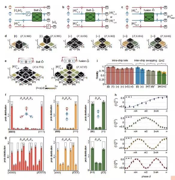 我们测试了一些关键的功能,例如量子态的晶片内/晶片间的隐形传态,以及四光子格林-霍恩-泽林格纠缠态的产生。