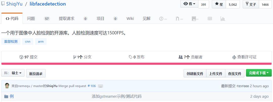 目前已经获得 5732 个Star,1596 个fork(GitHub地址:https://github.com/ShiqiYu/libfacedetection)