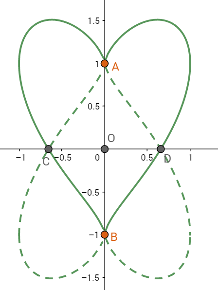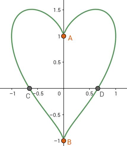 如果文字有点绕,我们通过图像来说明一下秩的几何意义吧。以心形线为栗子,标志一些特殊的点,方便等一下使用。