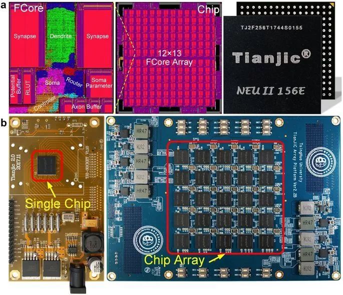 (导读 刘奇)基于计算机科学和基于神经科学来发展通用人工智能(AGI)存在根本性差异,且两者的平台支持不兼容。本研究介绍的“天机”芯片可提供混合协同平台,采用多核构架,可重构模块,数据流混合编码,适应算法类型广,单芯片在无人自行车系统中可实现实时目标检测、跟踪、语音控制、避障和平衡控制。本研究有望通过提供通用硬件平台加速AGI发展。[相关报道:清华大学“天机”芯片登上 Nature 封面:类脑加传统计算融合实现通用人工智能]