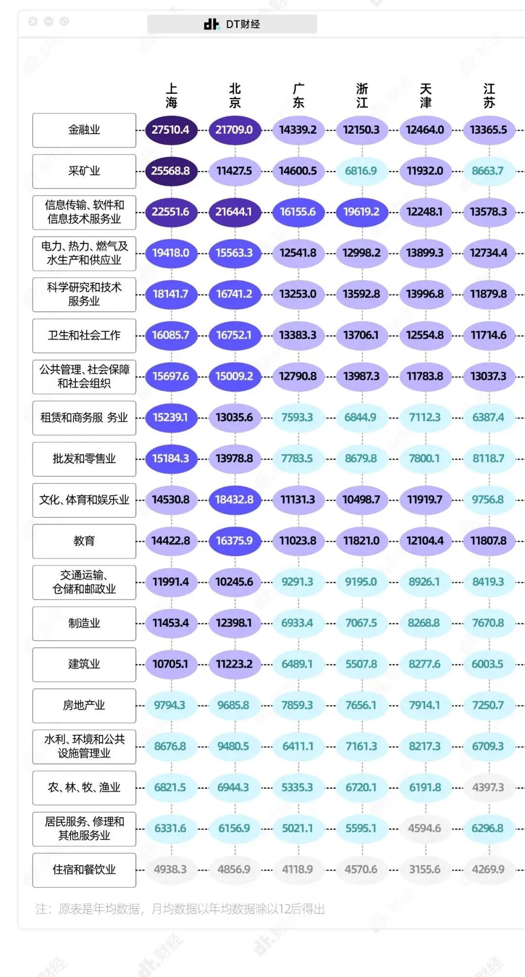 比如上海作为金融中心,它的金融行业就业人员平均工资在27510.4元/月,是全上海所有行业中最高的。